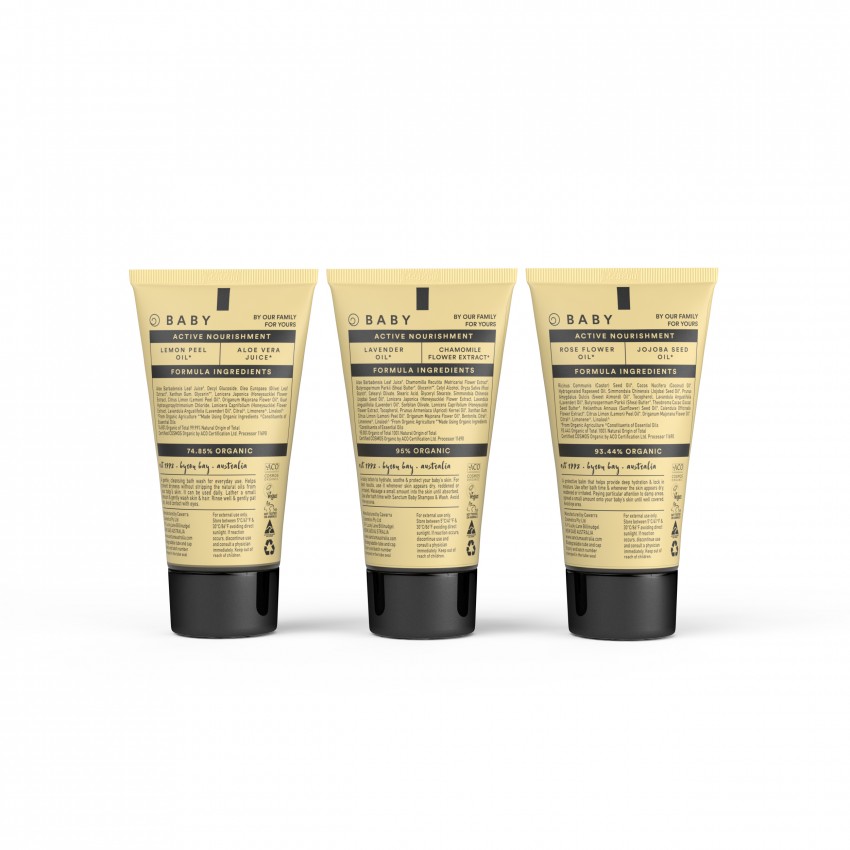 This daily moisturiser hydrates and protects the baby's skin. This formula uses native Australian actives and ethically sourced ingredients to nourish and lock in moisture. Based on the profoundly hydrating properties of Certified Organic Aloe Vera Leaf Juice, it helps relieve dryness and protect your baby's skin.